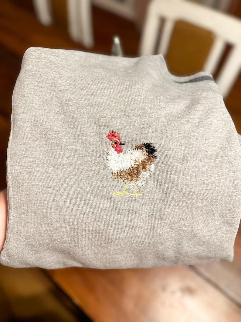 Chicken Flock Embroidered Sweatshirt, Fluffy Chicken Sweatshirt, Fluffy Chicken Crewneck For Chicken Mom