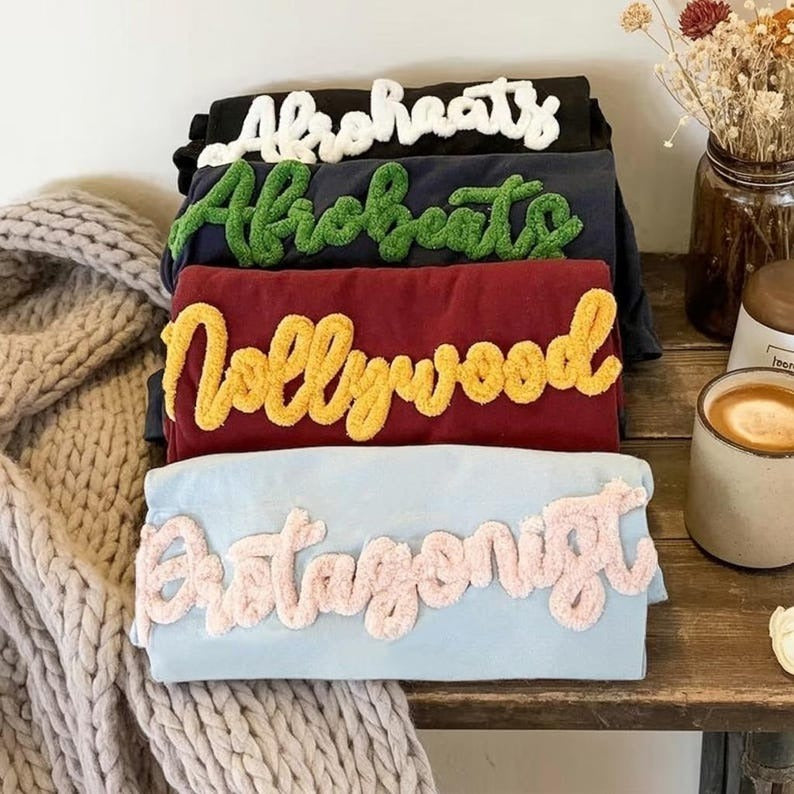 Custom Chenille YARN EMBROIDERED Sweatshirt Game Day Fuzzy Letter,Team Spirit Shirt, Chenille Patch Sports Team Sweatshirt