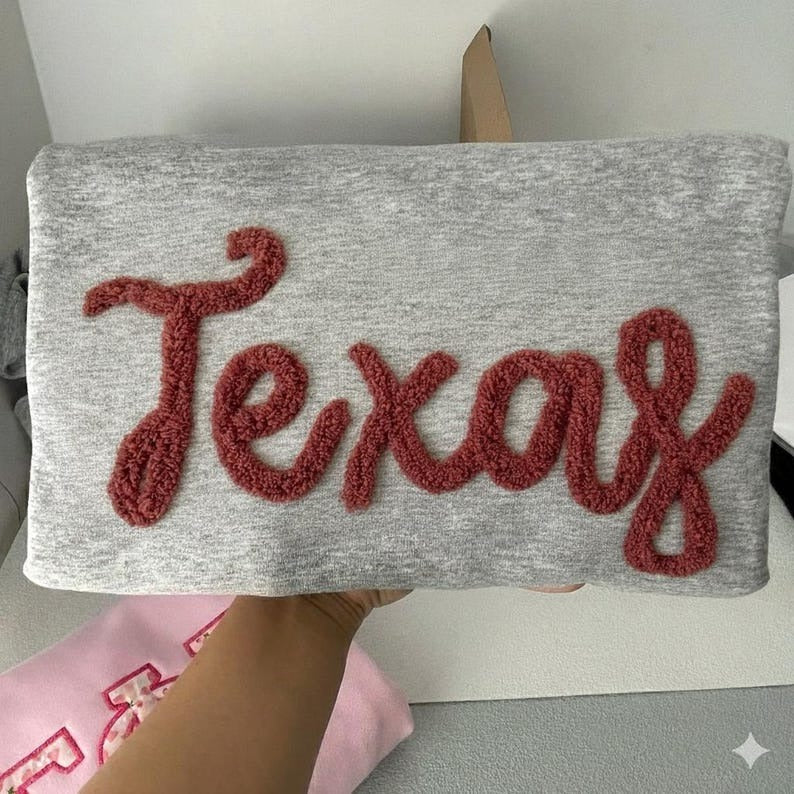 Custom Chenille YARN EMBROIDERED Sweatshirt Game Day Fuzzy Letter,Team Spirit Shirt,Football Moms,Chenille Patch Sports Team Sweatshirt