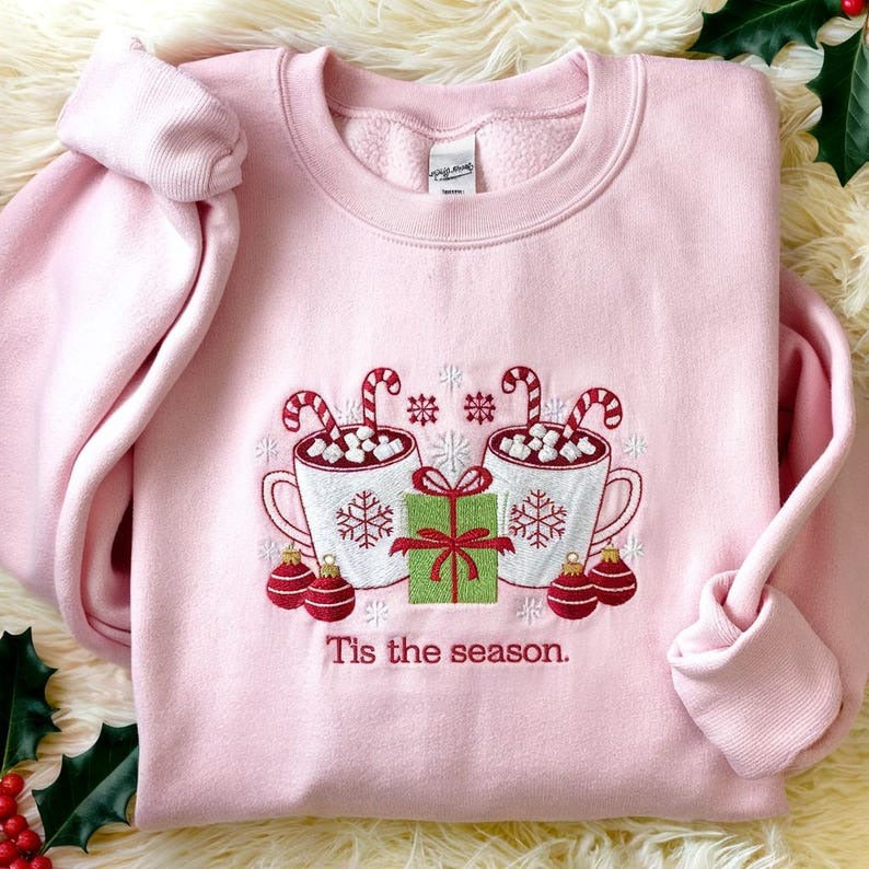 Christmas Tis The Season Embroidered Sweatshirt, Tis The Season Christmas Shirt, Cute Santa Holiday Shirt, Hot Cocoa Shirt, Merry Christmas