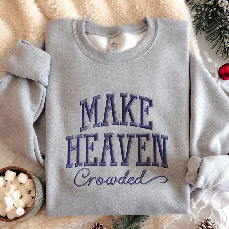 Make Heaven Crowded Embroidered Sweatshirt, Christian Quote Shirt, Faith Based Apparel, Religious Gift, Christmas Sweater, Bible Verse Shirt