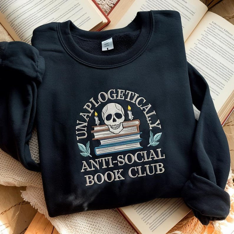 Anti Social Book Club Embroidered Crewneck Sweatshirt, Shirt for Introverted, Romance Reader Shirt, Vintage Distressed Reading Sweatshirt