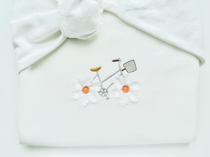 Awesome Floral Bicycle Summer Garden Bike Fluffy Embroidered Sweatshirt, Fringe Embroidered Sweatshirt, Embroidered Sweatshirt