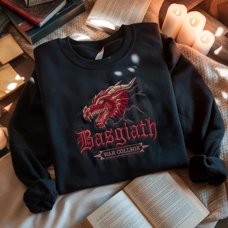 Basgiath War College Embroidered Crewneck Sweatshirt, Fourth Wing Sweatshirt, Fantasy Reader Sweatshirt, Bookish Sweatshirt, Book Lover Gift