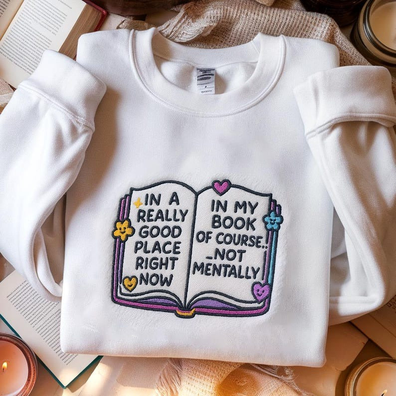 Bookish In A Really Good Place Right Now Embroidered Sweatshirt, Anxiety Shirt, Book Lover Shirt, Gifts For Readers, Funny Book Sweatshirt
