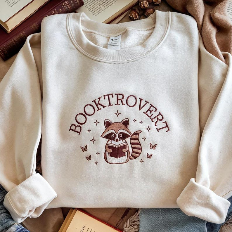 Booktrovert Embroidered Sweatshirt, Book Lover Shirt, Reading Sweater, Reading Shirt, Raccoon Embroidered Sweatshirt, Funny Raccoon Sweater