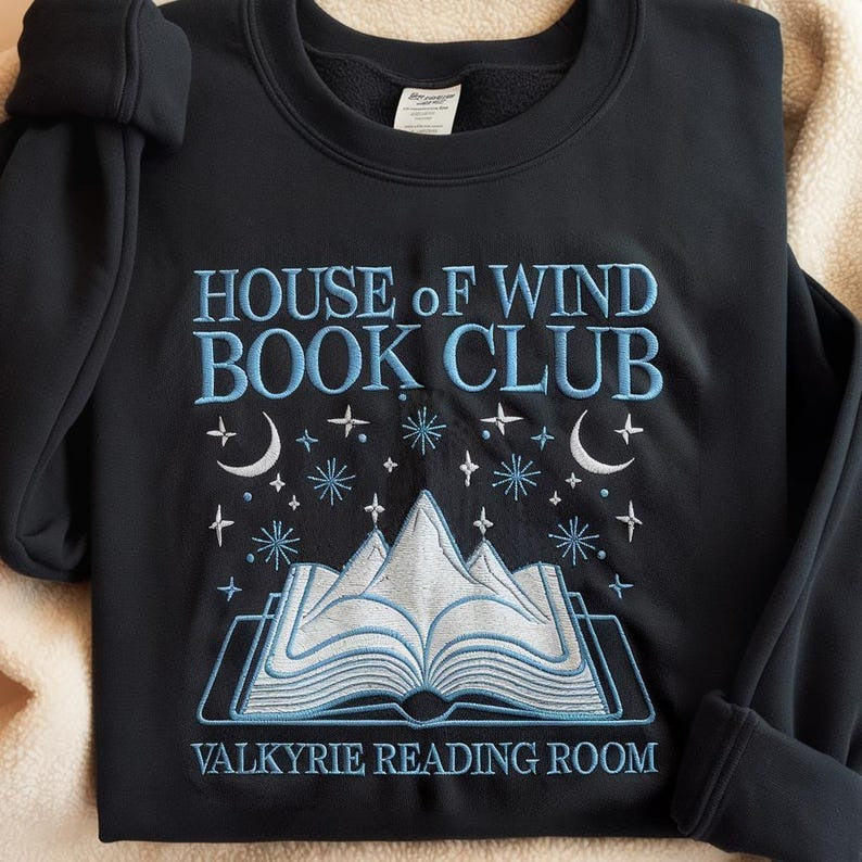 House Of Wind Book Club Embroidered Sweatshirt, Book Lovers Shirt, Acotar Book Club, Valkyrie Reading Room Sweatshirt, Night Court Sweater
