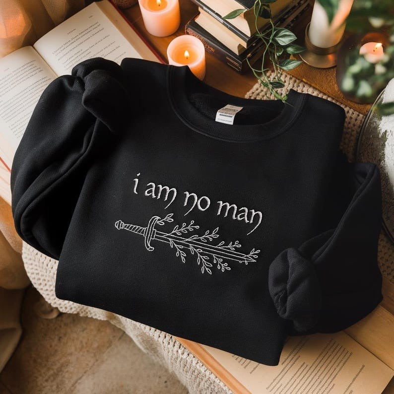 I Am No Man Embroidered Sweatshirt, Fantasy Merch, Fantasy Reader Shirt, Literature Shirt Book Lover Shirt Fantasy Book Shirt Fantasy Reader