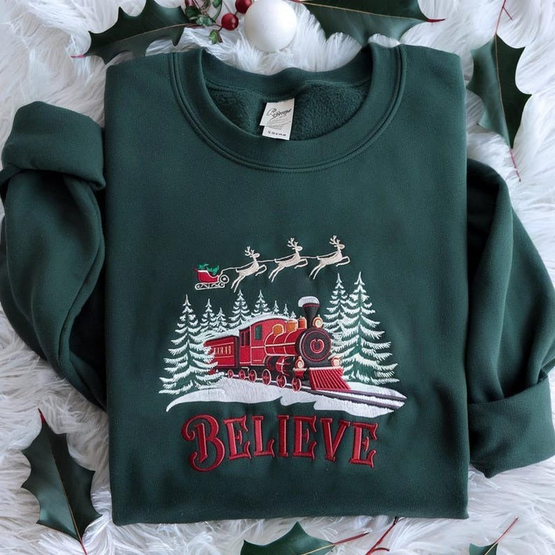 Polar Express Embroidered Sweatshirt, Christmas Sweatshirt, Christmas Believe Sweater, Merry Christmas, All Aboard Polar Express Sweatshirt