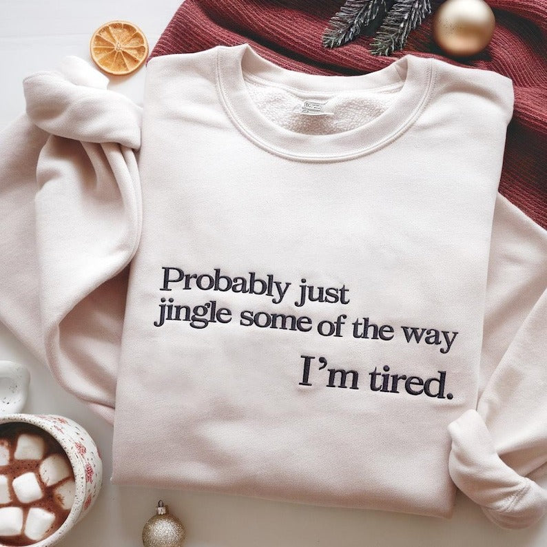 Probably Just Gonna Jingle Tired Embroidered Sweatshirt, Funny Christmas Shirt, Christmas Sweatshirt, Cute Christmas Shirt, Funny Xmas Gift