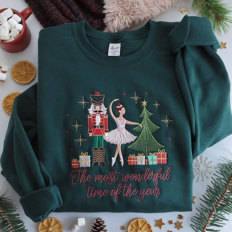 The Most Wonderful Time Of The Year Embroidered Sweatshirt, Christmas Nutcracker Ballet Embroidery Shirt, Merry Christmas, Xmas Holiday Gift