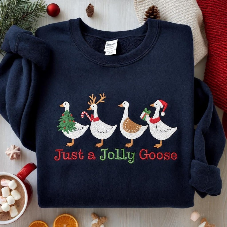 Just A Jolly Goose Embroidered Sweatshirt, Christmas Goose Shirt, Duck Christmas Sweatshirt, Funny Christmas Sweatshirt, Cute Holiday Shirt