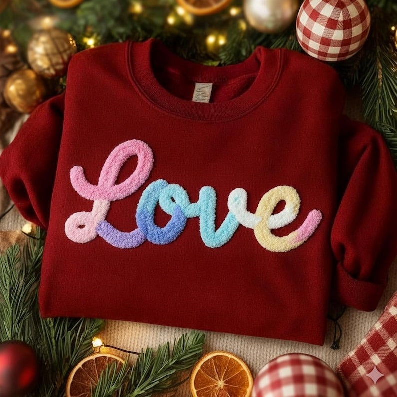 Custom Chenille Yarn Name Sweatshirt, Personalized YARN EMBROIDERED Christmas Sweatshirt, Chenille Yarn Embroidered Hoodie, Christmas Gifts
