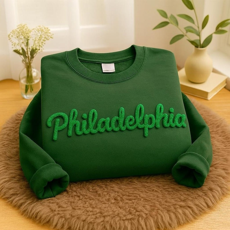 Customized Chenille Yarn Embroidered Sweatshirt, Embroidery Team Spirit T-shirt, Custom Name Family Hoodie, Football Love Shirt, Camp Tee