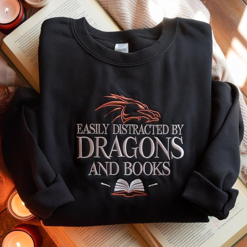 Books Are Magic Dragon Embroidered Sweatshirt, Book Lover Gift, Bookish Shirt, Smut Reader Sweatshirt, Reading Gift, Dragon Book Lover Shirt