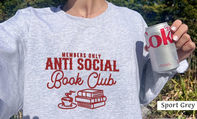 Anti Social Book Club Embroidered Crewneck Sweatshirt, Book Club Shirt, Book Lover Crewneck, Bookish Crewneck Sweatshirt, Reading Club Shirt
