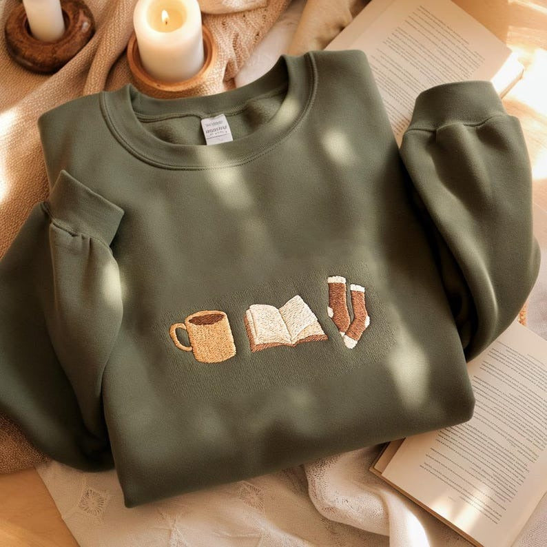 Embroidered Cozy Fall Sweatshirt, Cute Book Sweatshirt, Book Lover Sweater, Cute Autumn Books Sweatshirt, Cozy Season Sweatshirt, Cozy Shirt