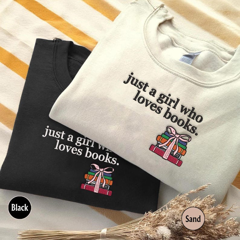 Just a Girl Who Loves Books Embroidered Sweatshirt, Bookish Sweatshirt, Just a Girl Sweatshirt, Book Lover Sweatshirt, Bookish Crewneck