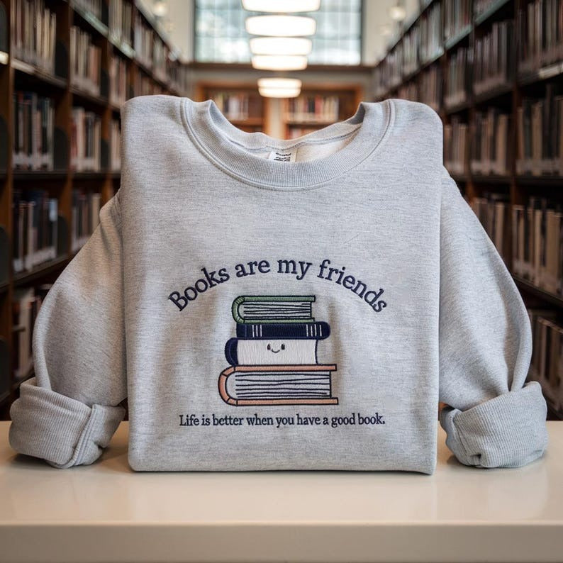 My Books Are My Friends Embroidered Sweatshirt, Bookish Sweatshirt, Reading Book Shirt, Bookworm Shirt, Bookish Sweatshirt Book Lovers Shirt