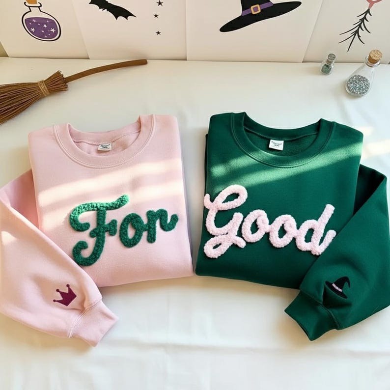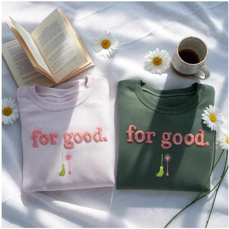 Embroidered For Good Yarn Embroidered Sweatshirt,, Good witch bad witch, shiz university, musical Defy Gravity, Aesthetic Changed For Good