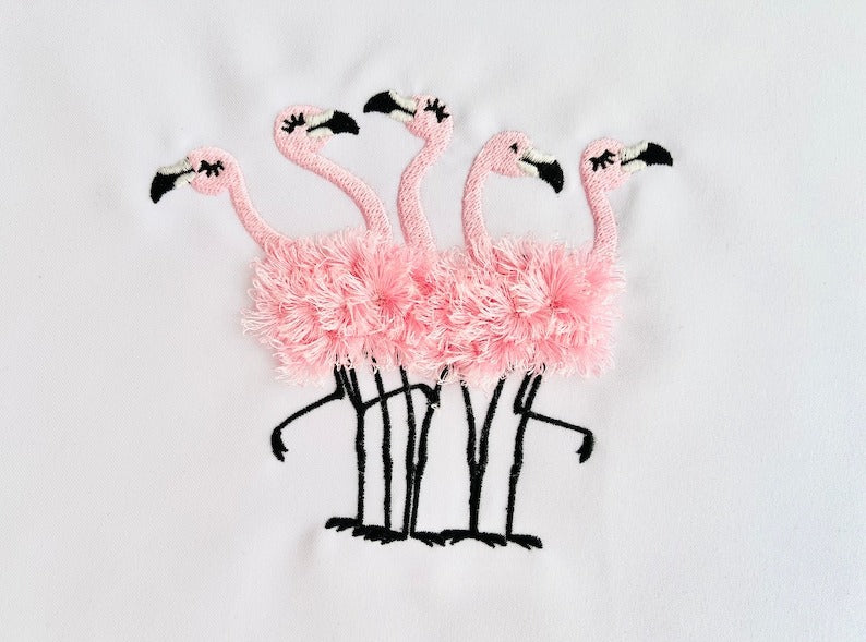 5 Fringed fluffy chenille Flamingos Fluffy Embroidered Sweatshirt, Fringe Embroidered Sweatshirt, Embroidered Sweatshirt
