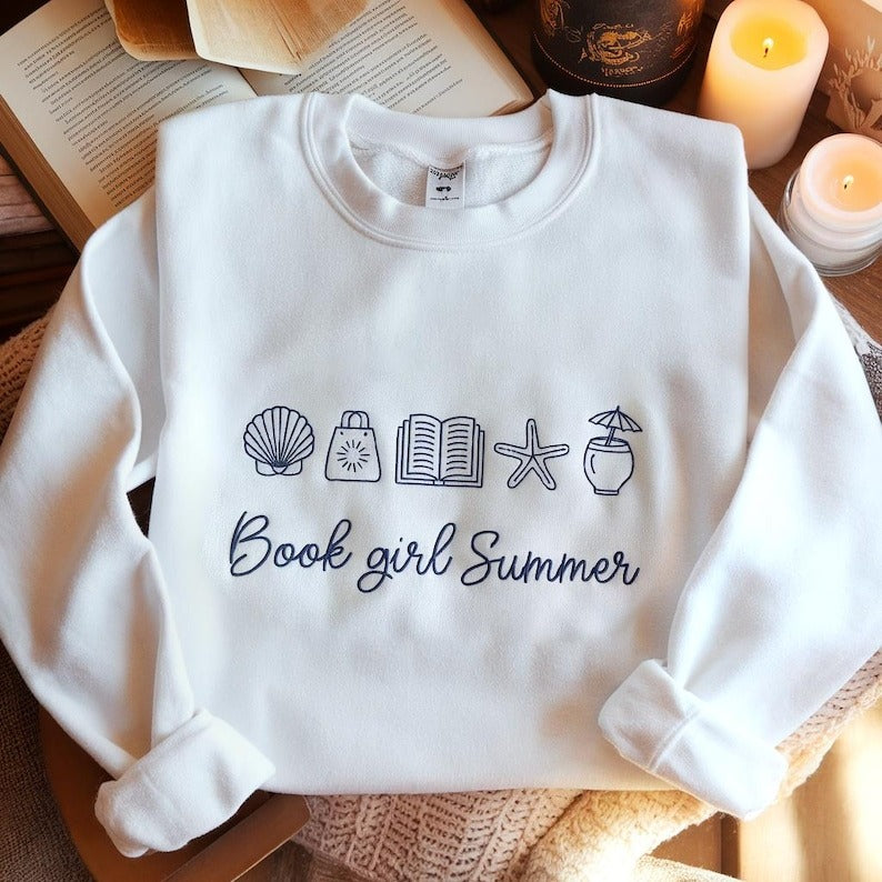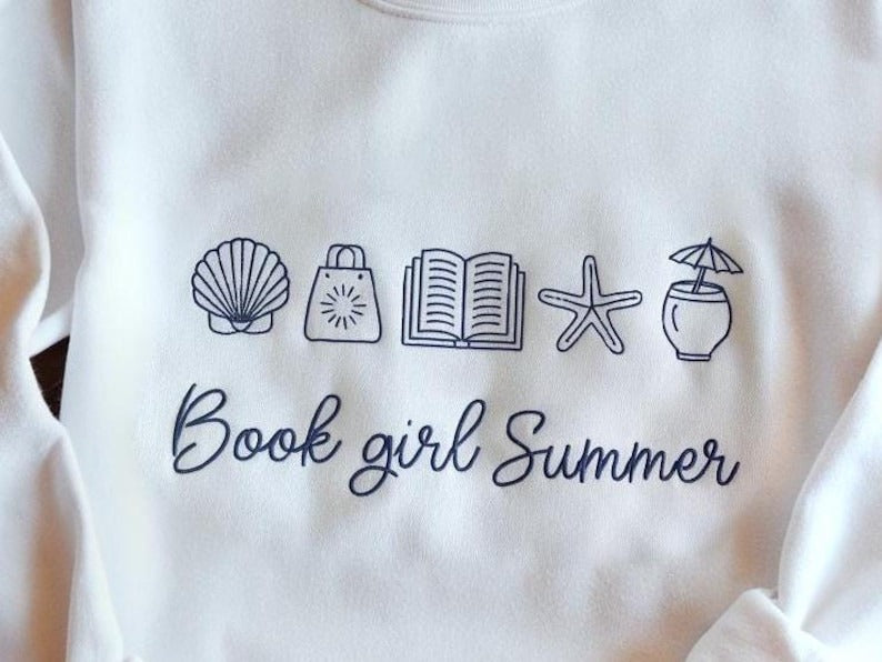 Book Girl Summer Embroidered Sweatshirt, Beachy Book Shirt, Book Lover Shirt, Bookish Summer Shirt, Girly Bookish Gift, Funny Readers Gift