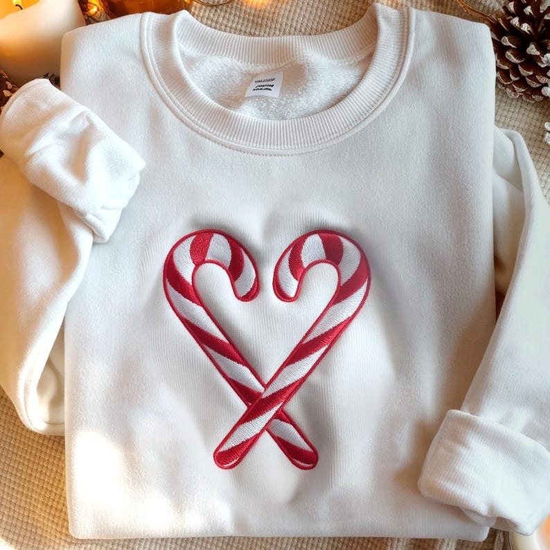 Candy Cane Embroidered Sweatshirt, Retro Christmas Sweatshirt, Holiday Sweatshirt, Merry Christmas Sweatshirt, Cute Christmas Sweatshirt