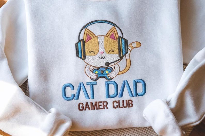 Cat Dad Gamer Club Embroidered Sweatshirt, Game Lover Shirt, Cat Dad Sweatshirt, Gamer Shirt for Dad, Cool Dad Club Shirt, Gamer Dad Shirt
