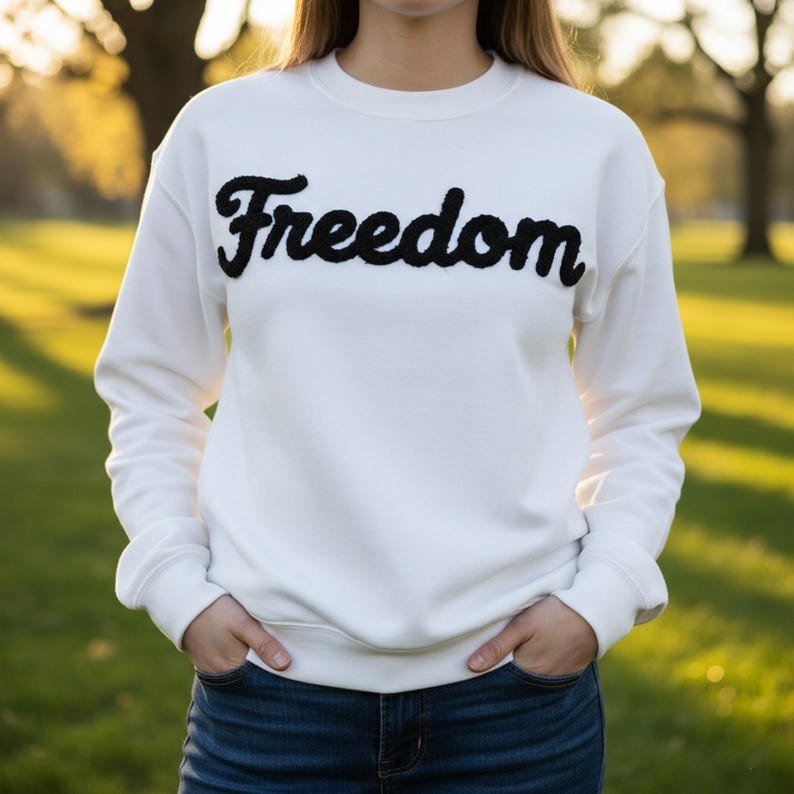Charlie Kirk Freedom Yarn Embroidered Shirt, Fuzzy Letter Spirit, Chenille Patch Embroidered, Free Speech Activist Gift, Custom Yarn Shirt