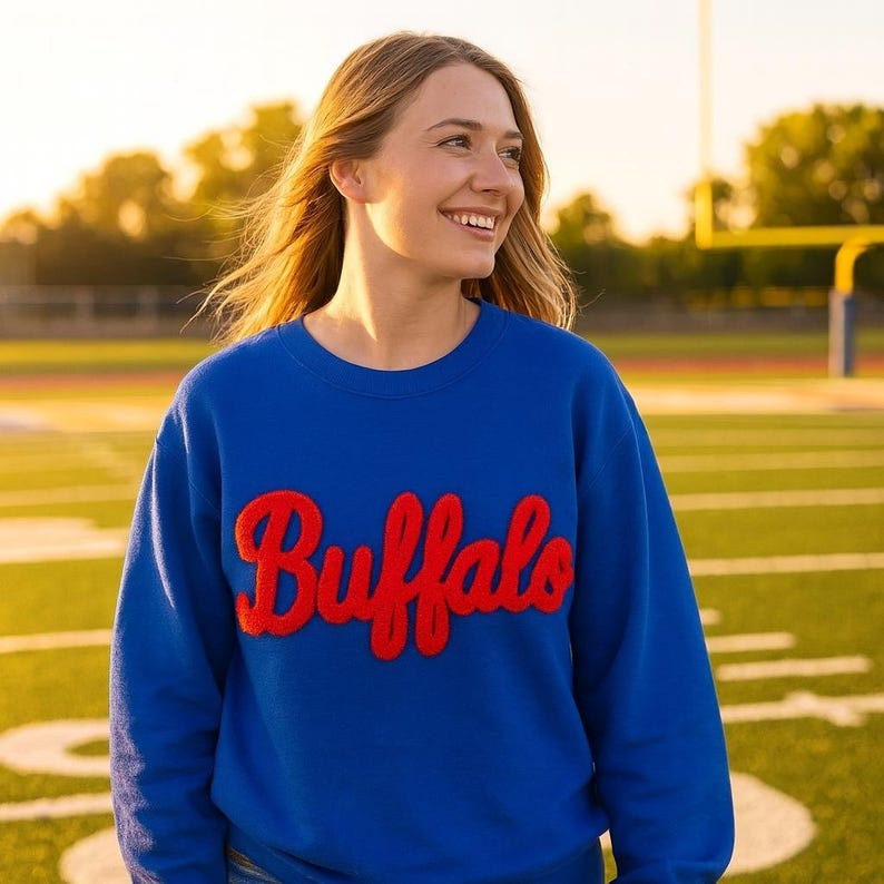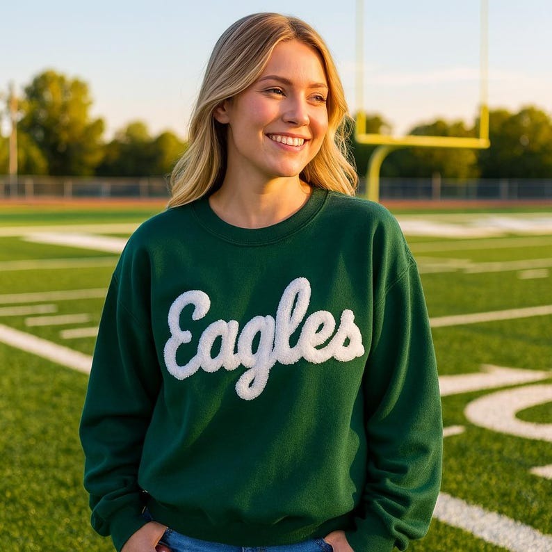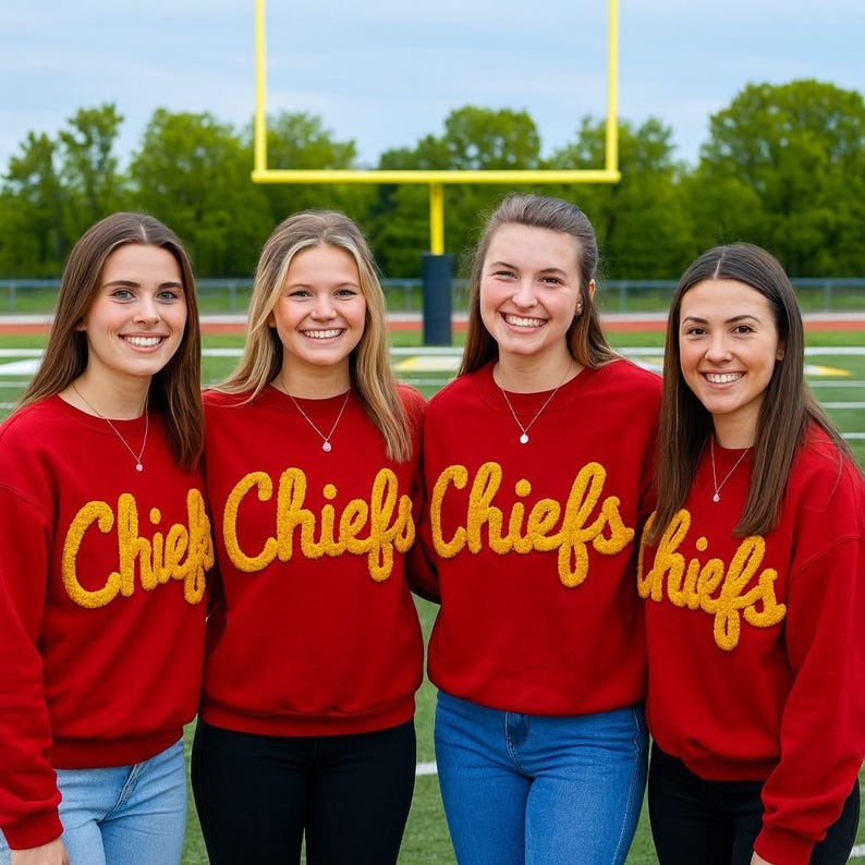 Chenille Yarn Sweatshirt, Custom Embroidery Spirit Shirt, Team Sports Outfit, Football Mom Gift, Fuzzy Letters Game Day Style