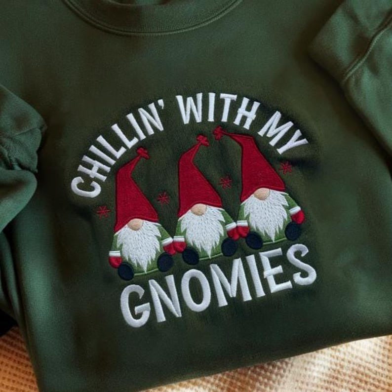 Chillin With My Gnomies Embroidered Sweatshirt, Christmas Gnomies Sweatshirt, Funny Christmas Shirt, Xmas Family Shirt, Christmas Sweatshirt