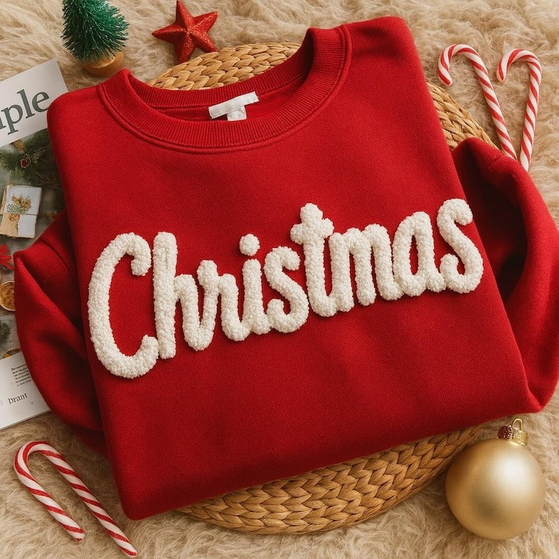 Christmas Chenille YARN EMBROIDERED Sweatshirt, Funny Custom Xmas Matching Shirt, Cousin Crew Matching Sweater