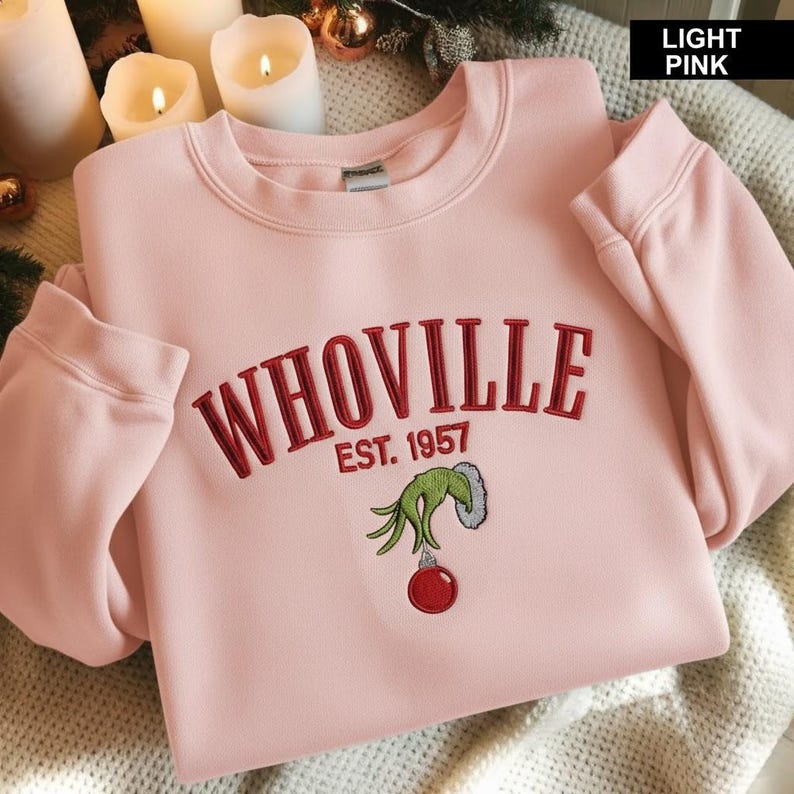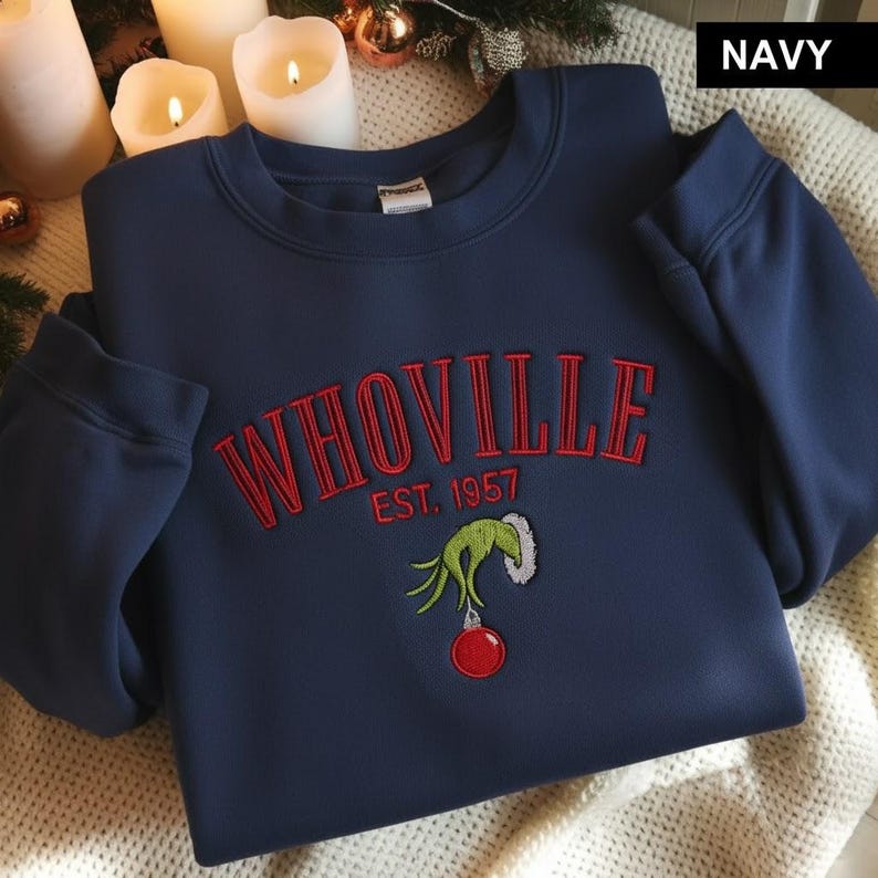 Whoville Christmas Merry Grinchmas Embroidered Sweatshirt, Christmas Gifts for Friends, Funny Christmas Embroidered Sweatshirt