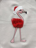Christmas Flamingo Fluffy bird Santa hat Fluffy Embroidered Sweatshirt, Fringe Embroidered Sweatshirt, Embroidered Sweatshirt