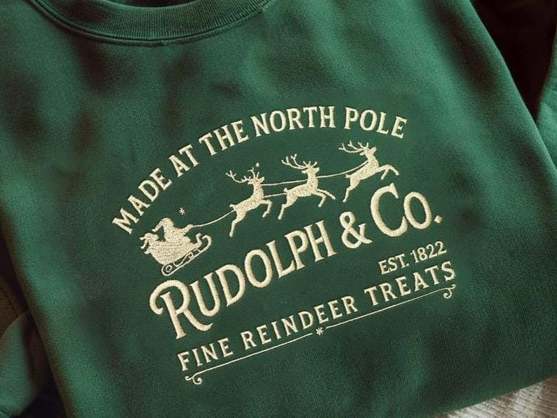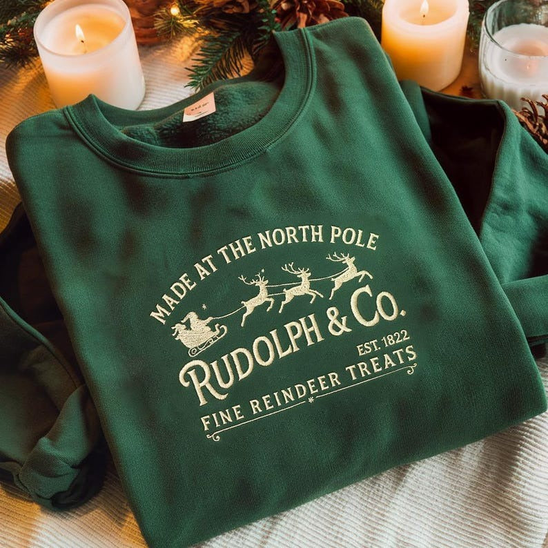 Christmas Reindeer Embroidered Sweatshirt, Merry Christmas Sweatshirt, Rudolph & Co Sweatshirt, Santa Sweatshirt, Retro Christmas Sweatshirt