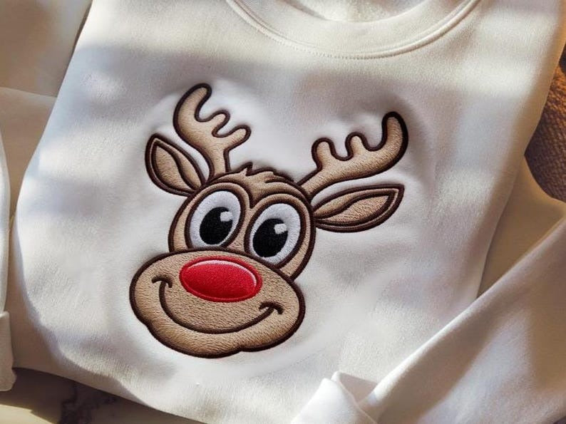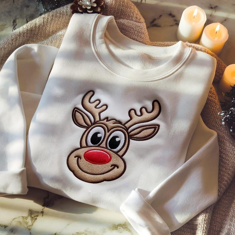 Christmas Reindeer Embroidered Sweatshirt, Retro Christmas Sweatshirt, Holiday Sweatshirt, Santa Sweatshirt, Cute Funny Christmas Sweatshirt