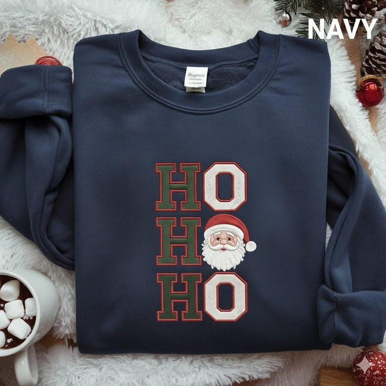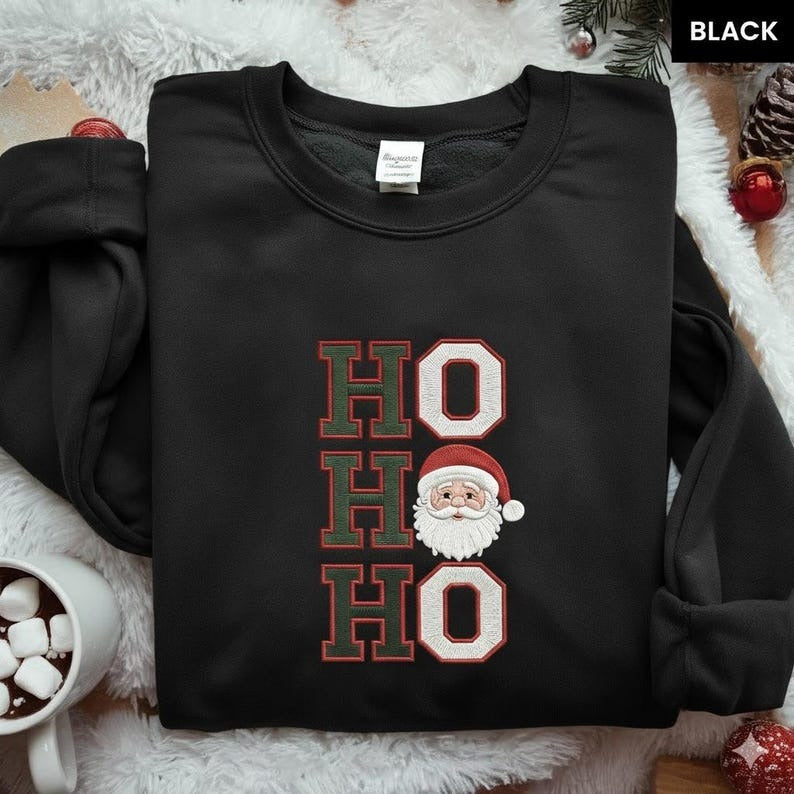 Christmas Santa Ho Ho Ho Embroidered Sweatshirt, Funny Christmas Shirt, Christmas Sweater, Family Christmas Shirt, Christmas Vacation Shirt
