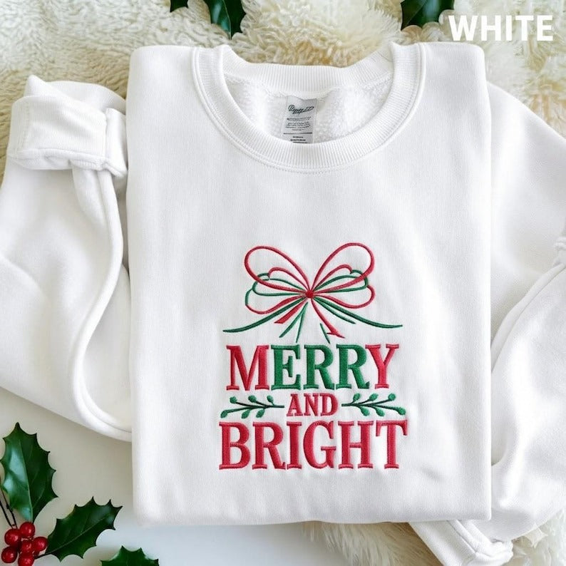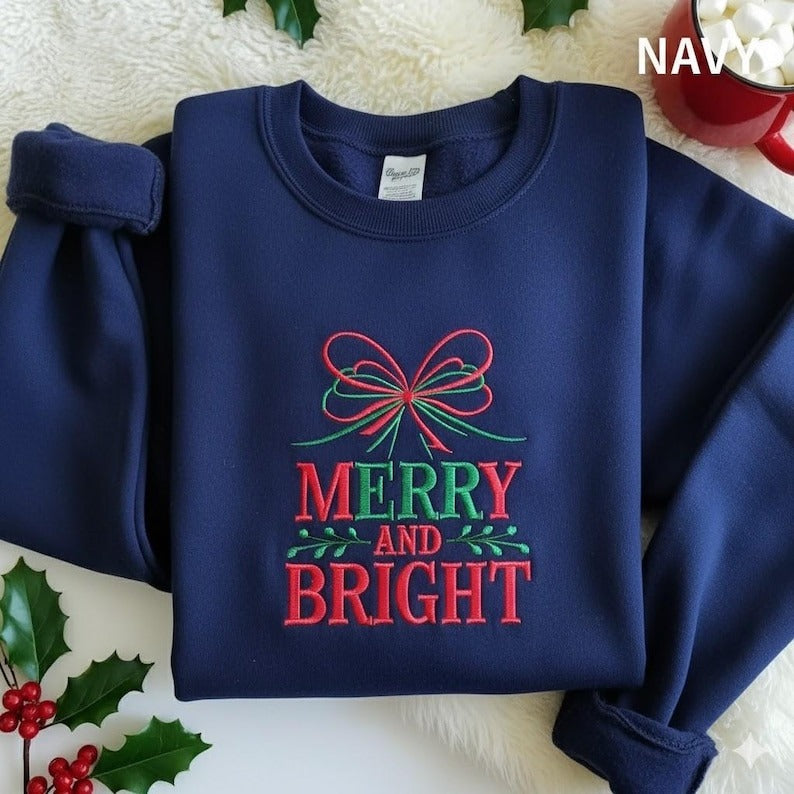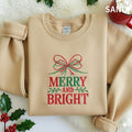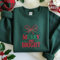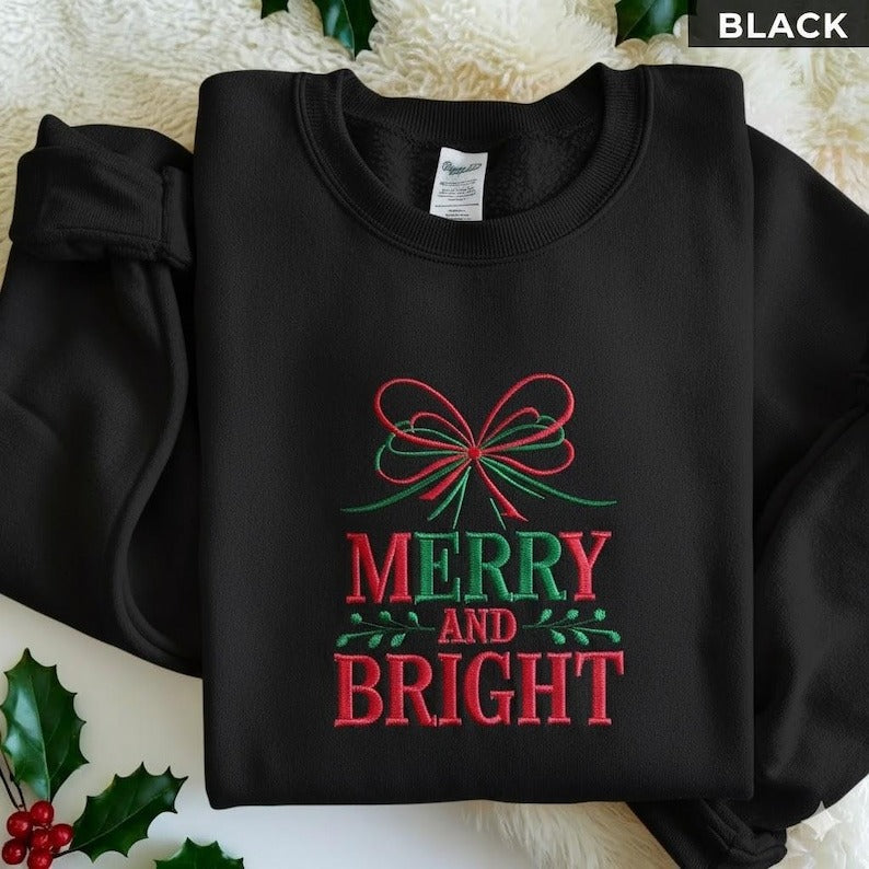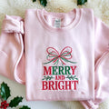 Coquette Bow Merry and Bright Embroidered Sweatshirt, Merry Christmas Shirt, Christmas Coquette Shirt, Christmas Tree, Christmas Sweatshirt