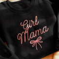 Coquette Girl Mama Embroidered Sweatshirt, Mom Crewneck, Girl Mama Sweatshirt, Mama with Bow Ribbon Embroidered Shirt, Mother's Day Shirt