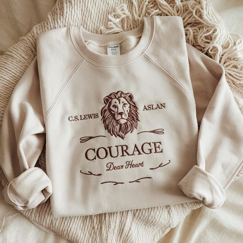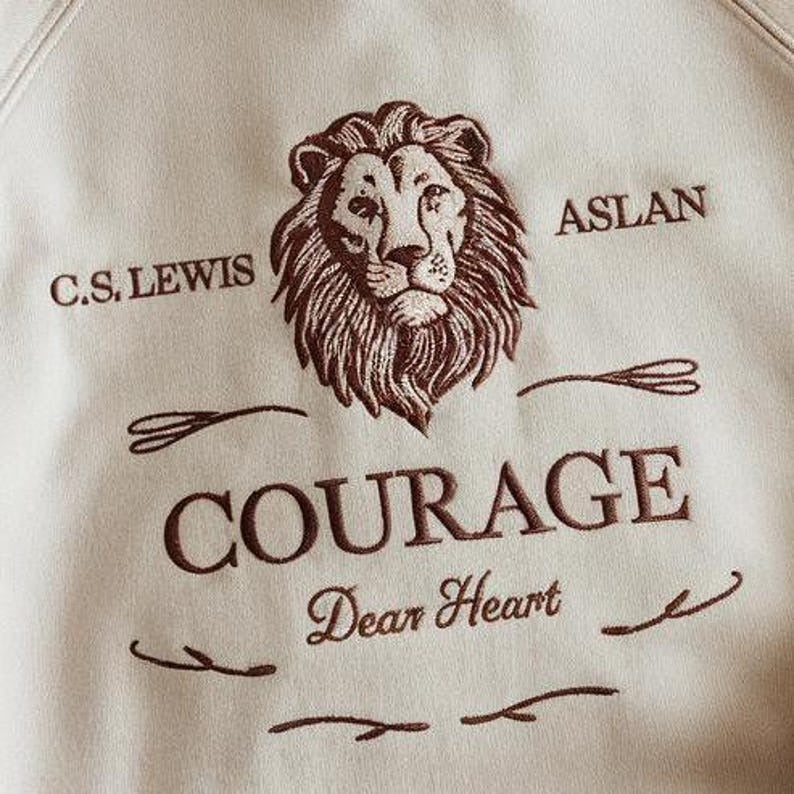 Courage CS Lewis Narnia Lion Embroidered Sweatshirt, Bookish Shirt, Reader Light Dark Academia Shirt Fantasy Book Lover Shirt Literary Shirt