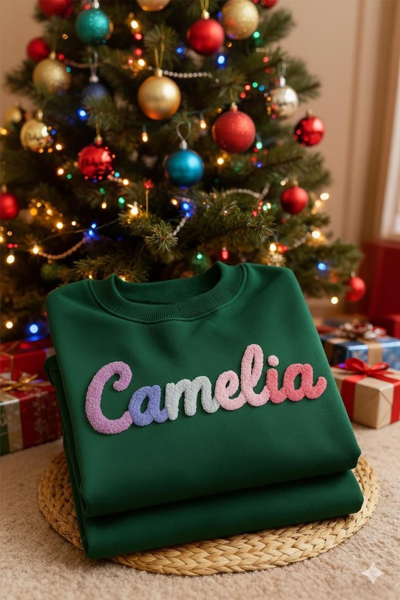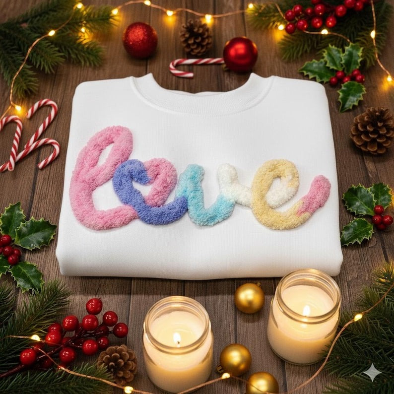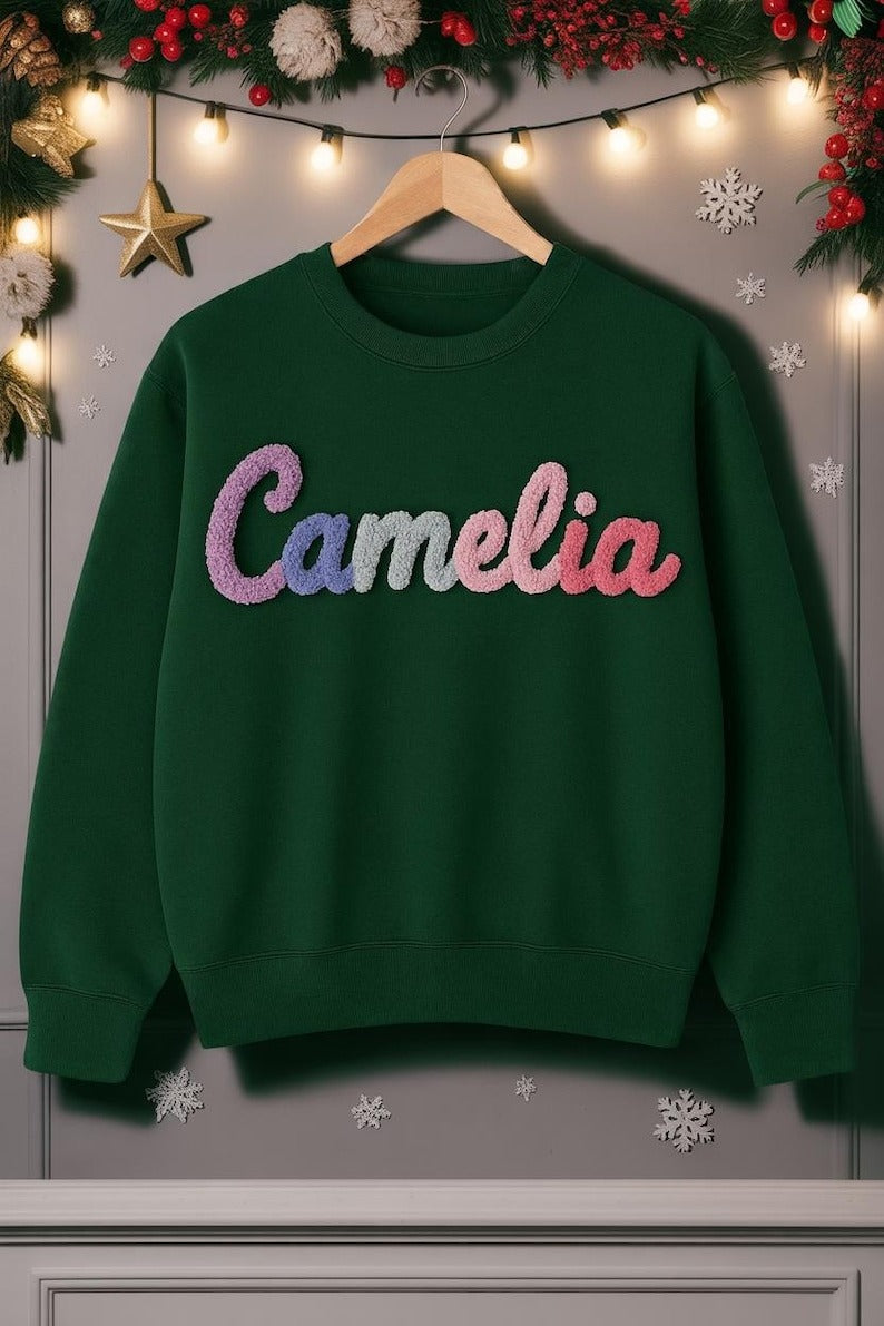 Custom Chenille Yarn Name Sweatshirt, Personalized YARN EMBROIDERED Christmas Sweatshirt, Chenille Yarn Embroidered Hoodie, Christmas Gifts