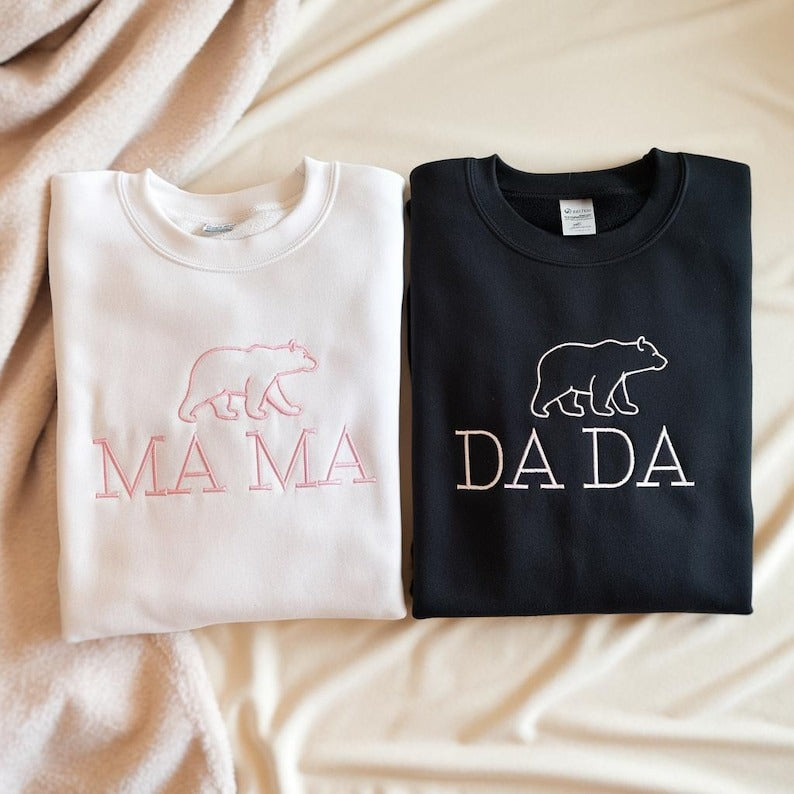 Custom Mama Dada Bear Embroidered Sweatshirt, Matching Parents Outfit, Mama Bear Sweatshirt, Cute Dada Bear Sweatshirt, Mom Dad Bear Shirt
