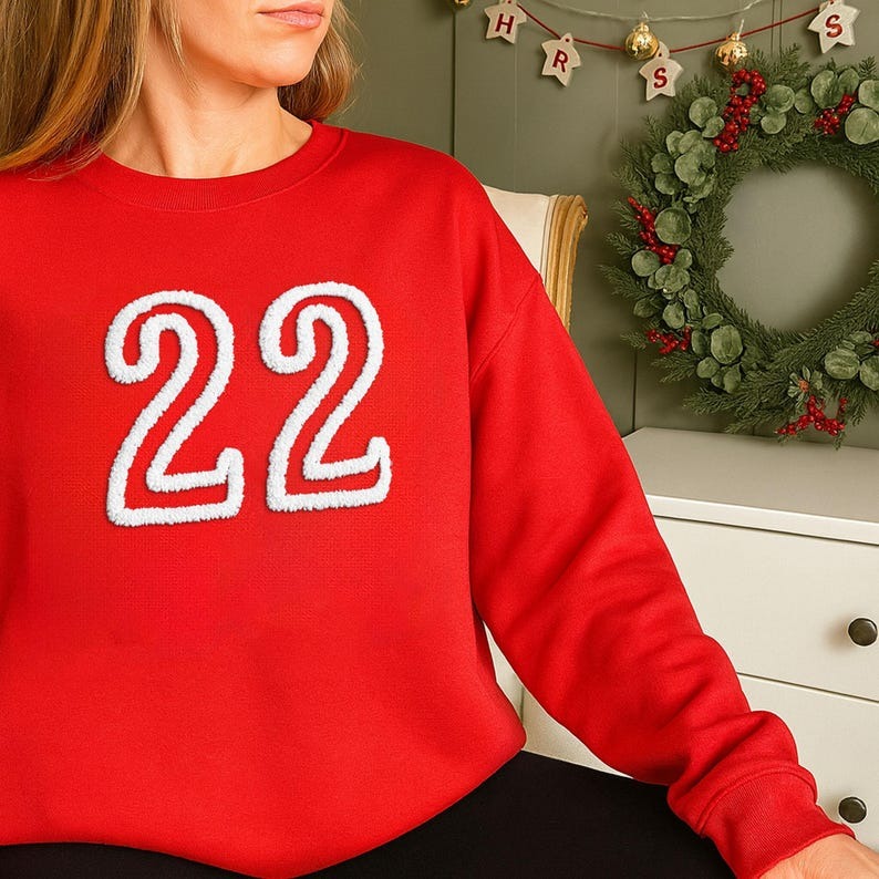 Custom Number Chenille YARN EMBROIDERED Sweatshirt, Soccer Mom Game Day Adult Shirt, Custom Football Shirt, School Team Number Kids Shirt