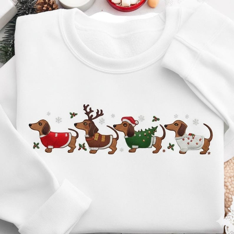 Dachshund Christmas Embroidered Sweatshirt, Christmas Sweater, Funny Dog Christmas Sweatshirt, Xmas Dachshund Sweatshirt, Wiener Dog Holiday