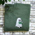 Embroidered Fall Ghost Reading Book Halloween Sweatshirt or Hoodie
