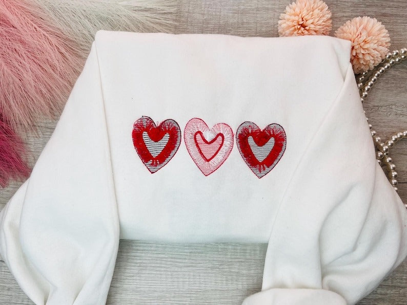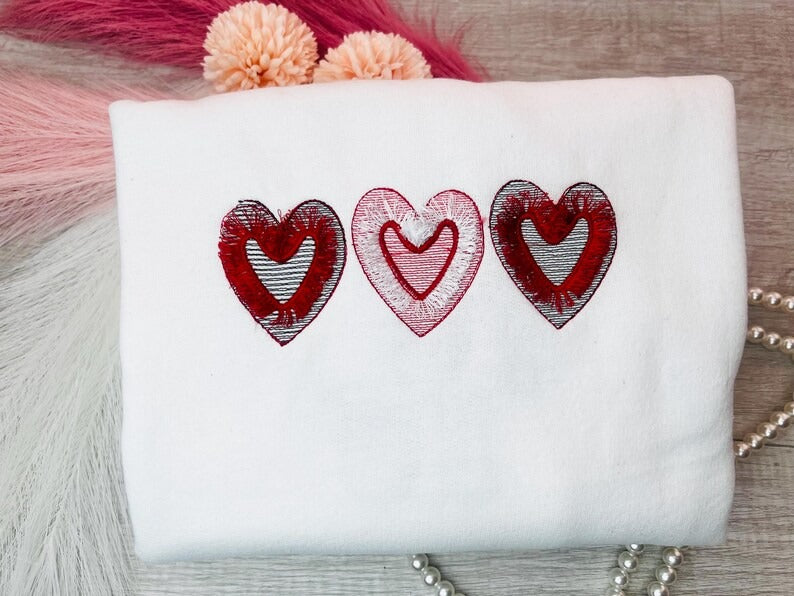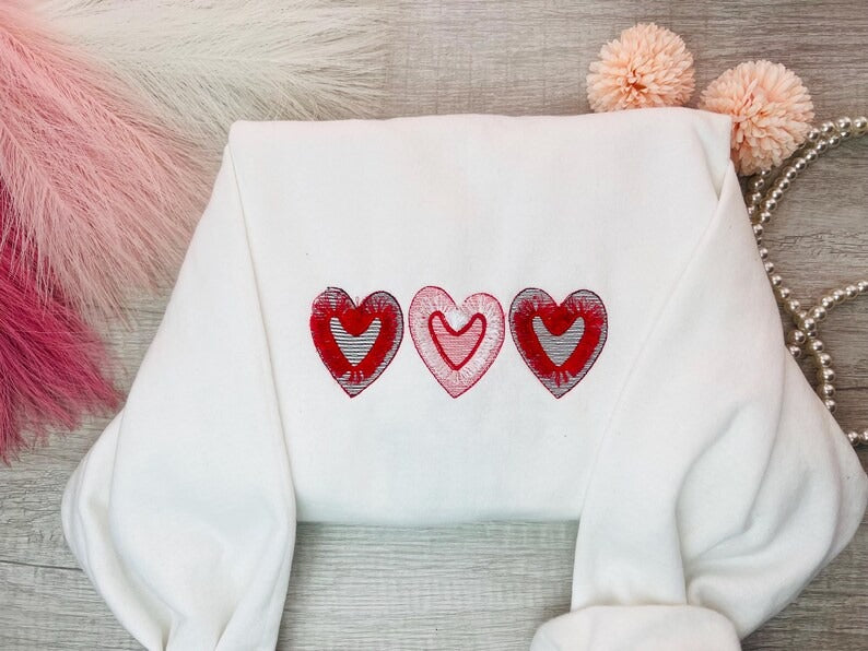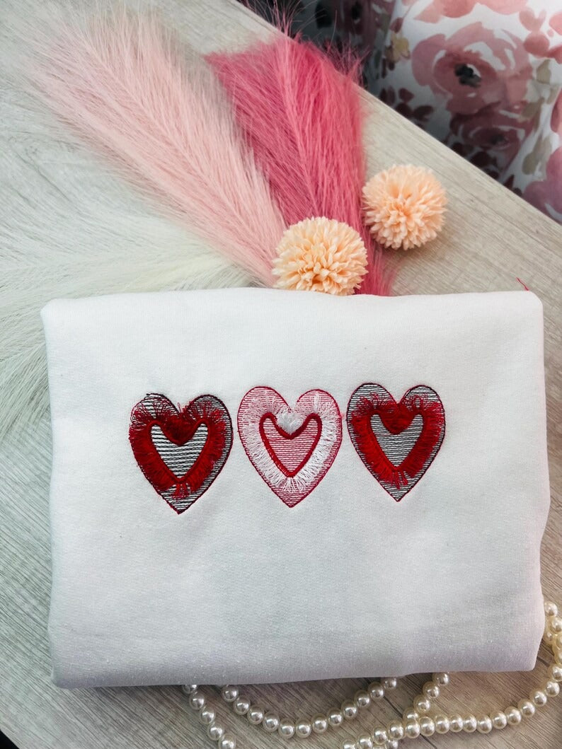 Embroidered Fluffy hearts Sweatshirt , Valentine’s Day Hearts Sweater , Fringe fluffy hearts Valentine lover Crewneck