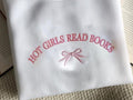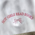 Embroidered Hot Girls Read Books Sweatshirt, Hot Girls Read Shirt, Embroidered Bow Sweatshirt, Coquette Embroidered Shirt, Book Lovers Shirt