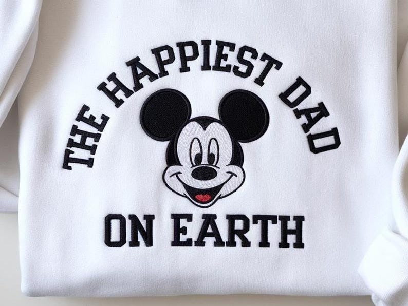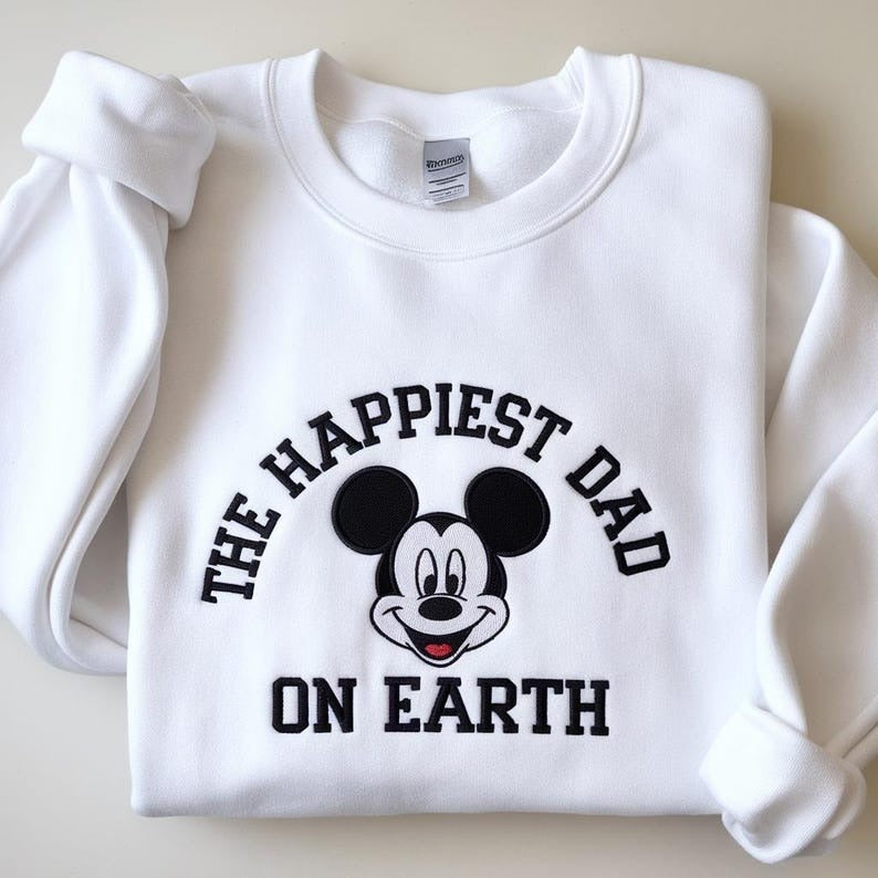 Embroidered Mickey Mouse The Happiest Dad on Earth Disney Sweatshirt, Disney Trip Dad Shirt, New Dad Disney Sweater, Disney Dad Sweatshirt