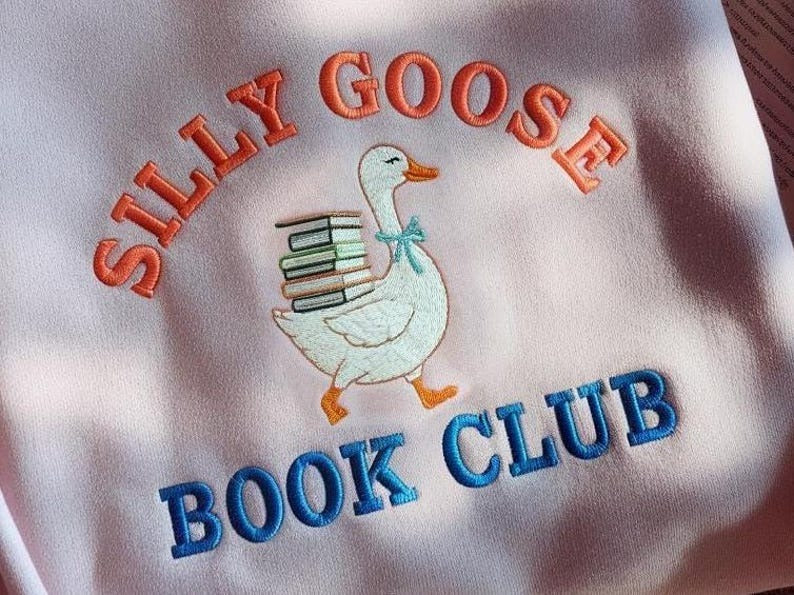 Embroidered Silly Goose Book Club Sweatshirt, Cute Bookish Sweatshirt, Gift for Book Lover, Book Lover Shirt, Readers Gift, Book Club Shirt