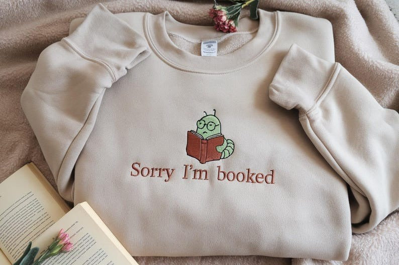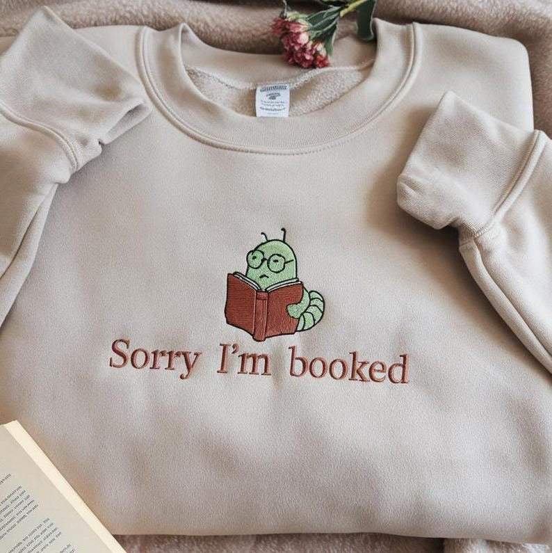 Embroidered Sorry I'm Booked Sweatshirt, Bookish Shirt, Booklover Sweathirt, Funny Books Shirt Reading Crewneck Shirt, I'm Booked Sweatshirt